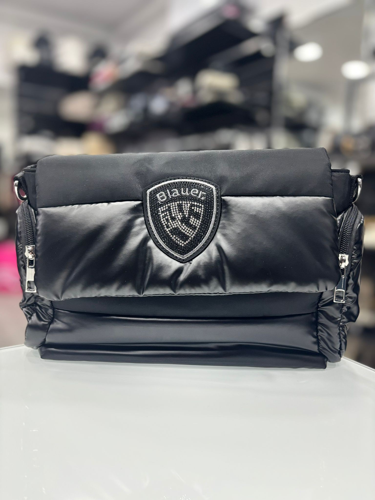 BORSA DONNA BLAUER CON TRACOLLA LOGO SCUDETTO STRASS
